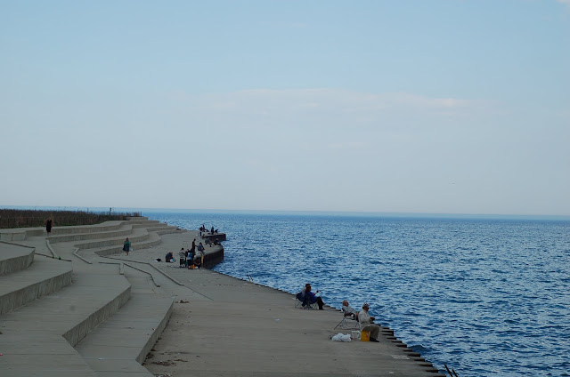 Chicago weather is so unpredictable. This morning I was wearing a light silk dress and was burning up in the hot sun, and by the afternoon I had changed to pants and had to bring along a sweater. And about twenty minutes after these shots were taken it warmed up again and we got poured on while riding home. Ah, well. It works out for someone like me who loves to change outfits several times a day anyway, and on this day it gave me a chance to wear this vintage silk blouse that I just picked up on Etsy and which I love already. I paired it here with several other favorites --- J Crew toothpick ankle jeans, Soludos espadrilles, vintage Coach bag, and the lapis lazuli necklace that Jeff got me for Christmas.