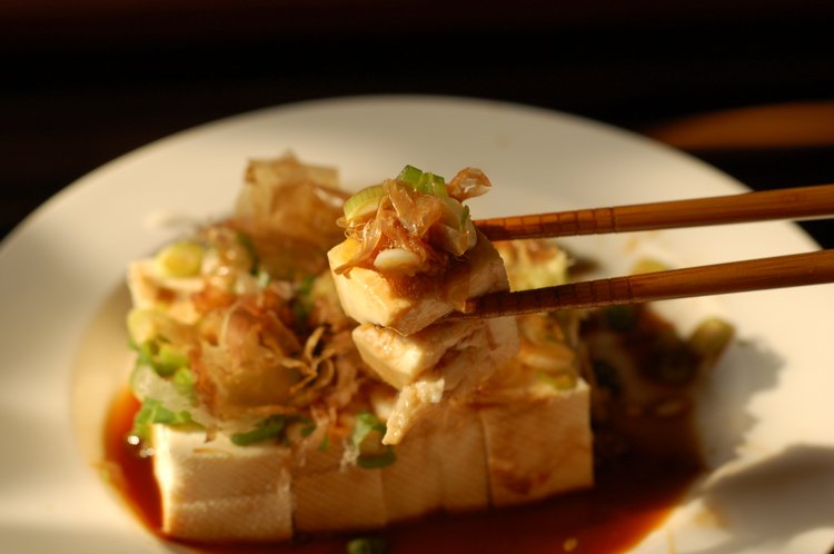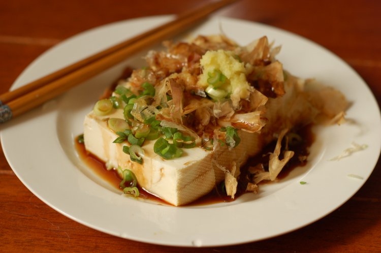 cold tofu + negi + ginger + katsuobushi + shoyu